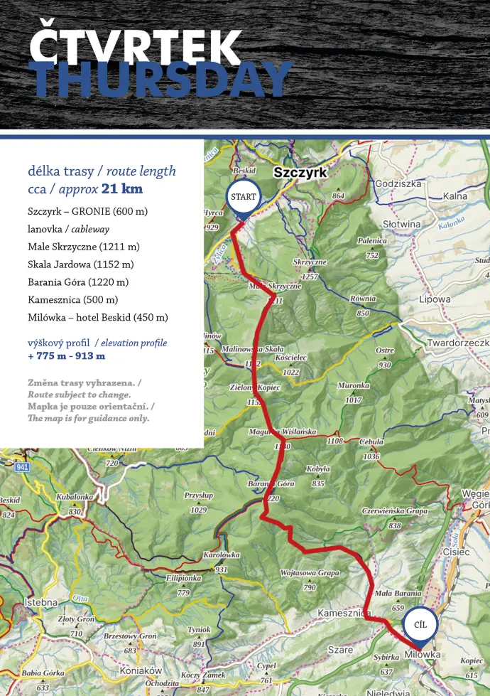 During the third stage, we descend steeply through the mountains to the village of Bystra, from where we then climb to the mountain town of Szczyrk. The reward for the challenging descents and ascents is accommodation in the beautiful Gronie Hotel.